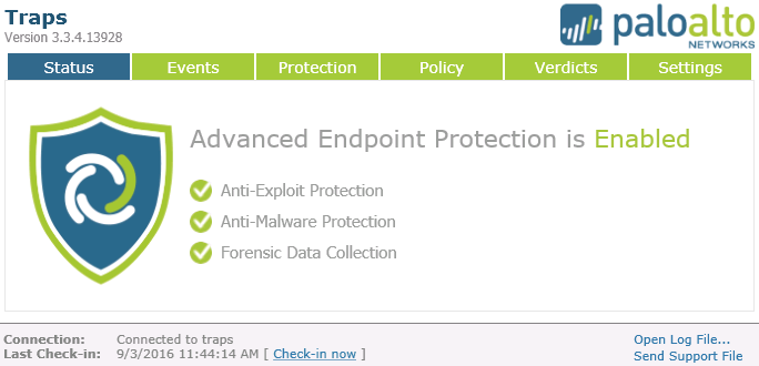 Traps es un elemento esencial para la protección en el cliente que complementada la protección basada en la red y que además comparte la inteligencia de Wildfire para amenazas de día "0". -